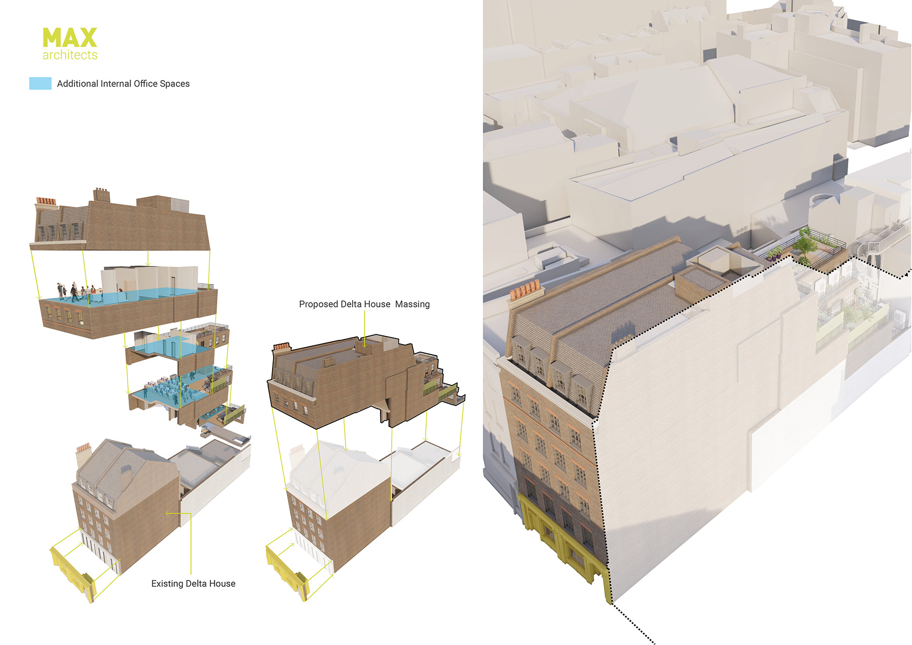 Delta House is a 5-storey office building located in Borough High Street. The building is a former retail unit with residential accommodation above (shop keepers flat), converted into office accommodation. The property comprises 921 sqm of gross internal area of office and ancillary accommodation arranged over basement, ground and four upper floors. The site is mainly formed of two separate elements being the original (much altered) buildings at 175-177 and a number of 1960’s rear building sections added over time.